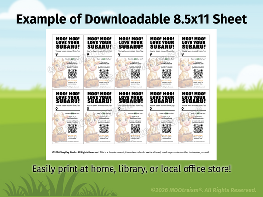 Digital "You've Been Mooed" Card Sheet (Subaru-Focused)