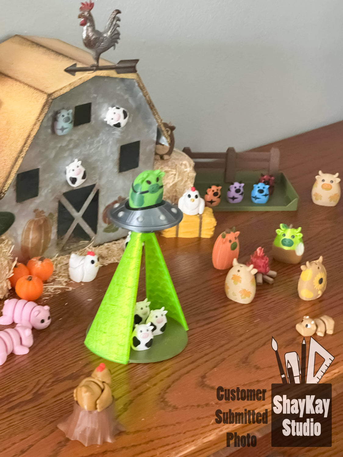 A fullblown barnyard scene, complete with our MOOthership.