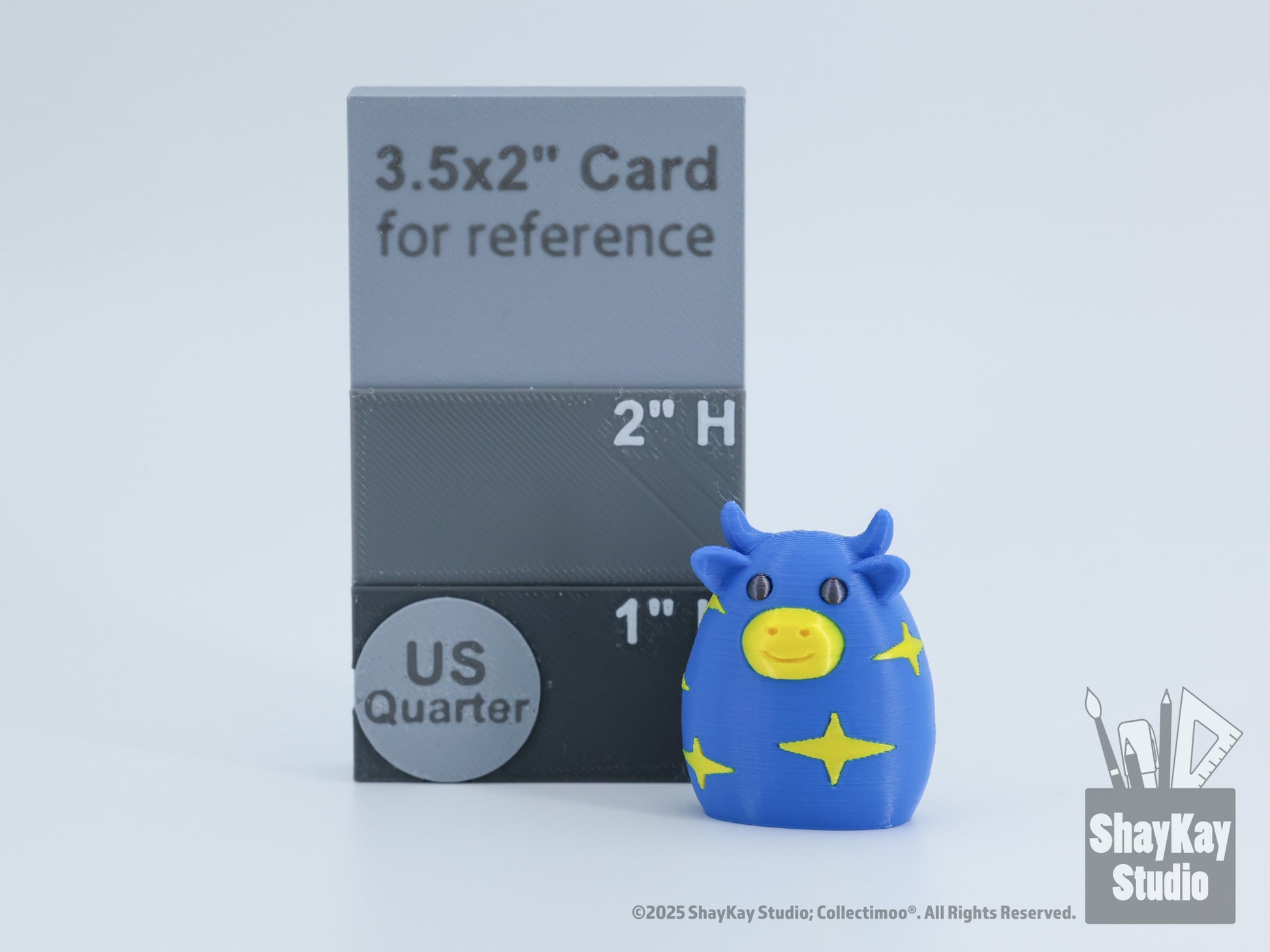 - Size: Moo ~1.58" tall; Micro moo ~1" tall