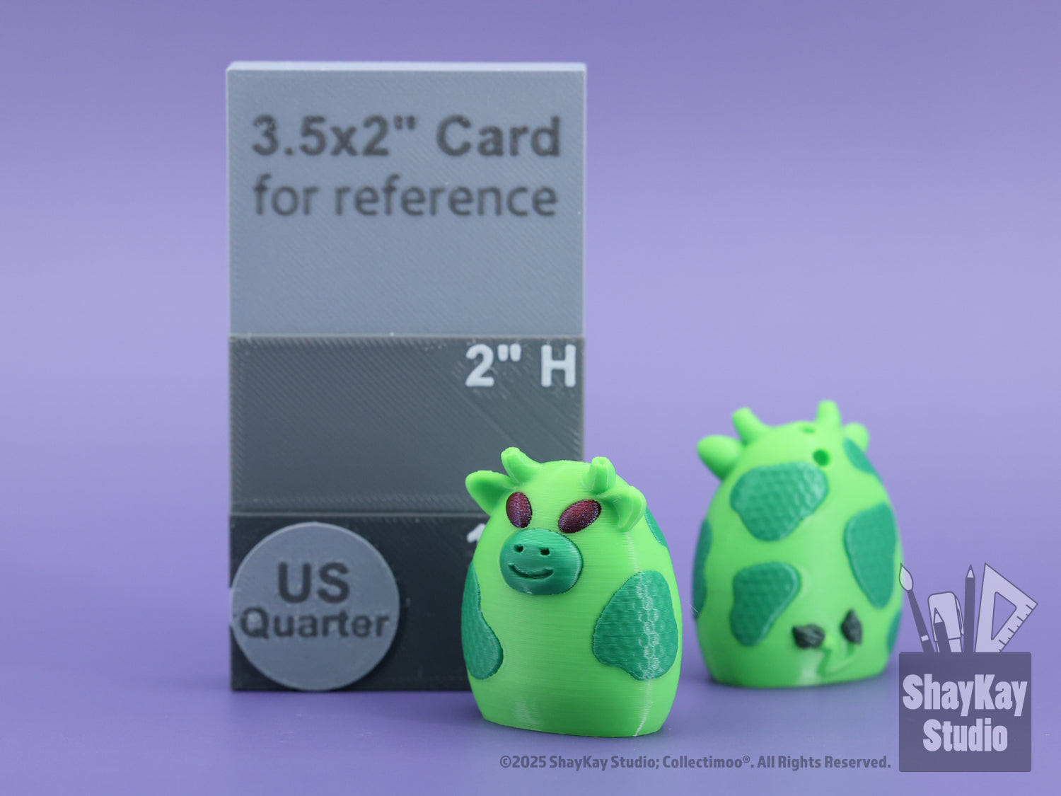 - Size: Moo ~1.58" tall; Micro moo ~1" tall