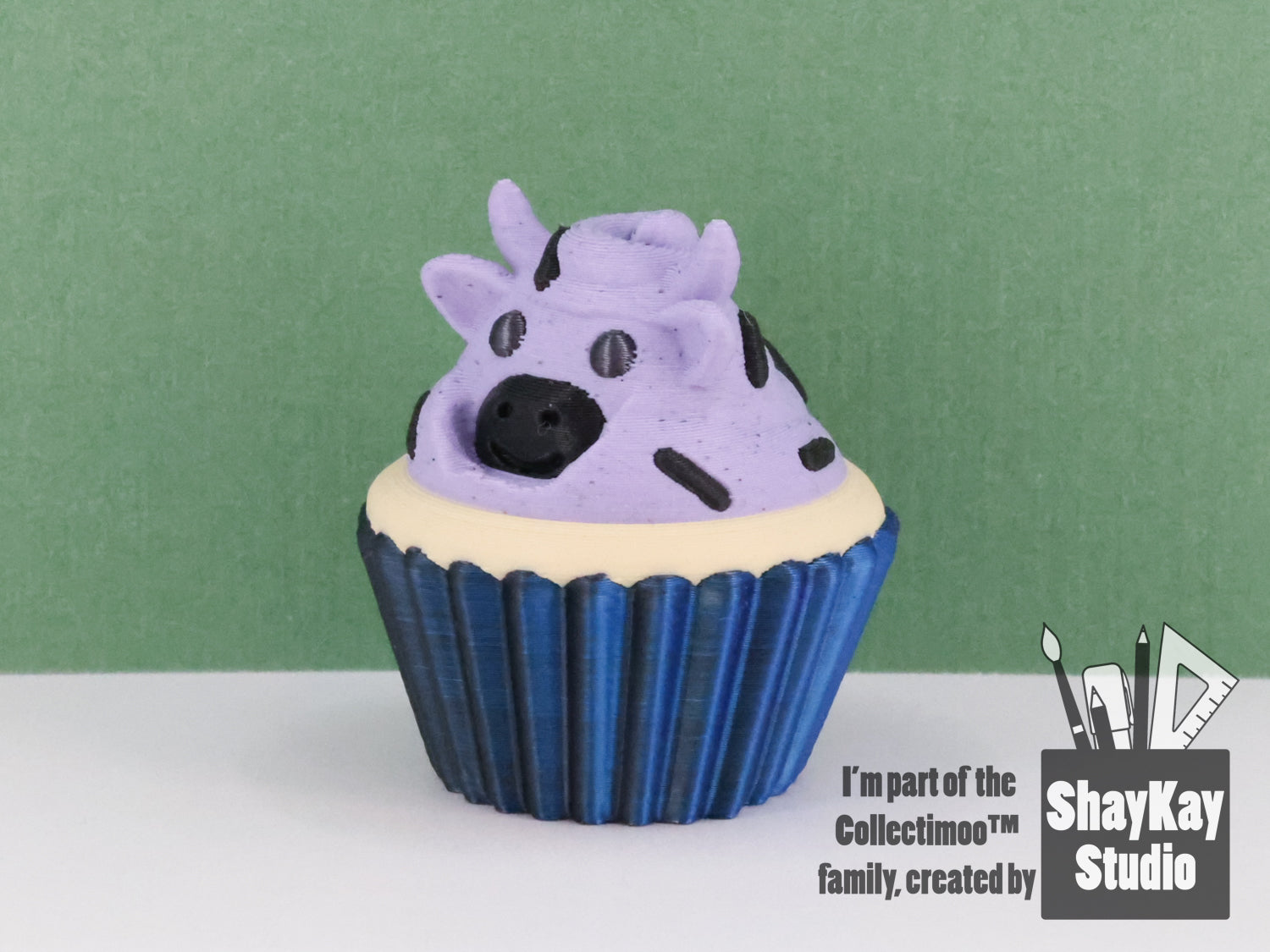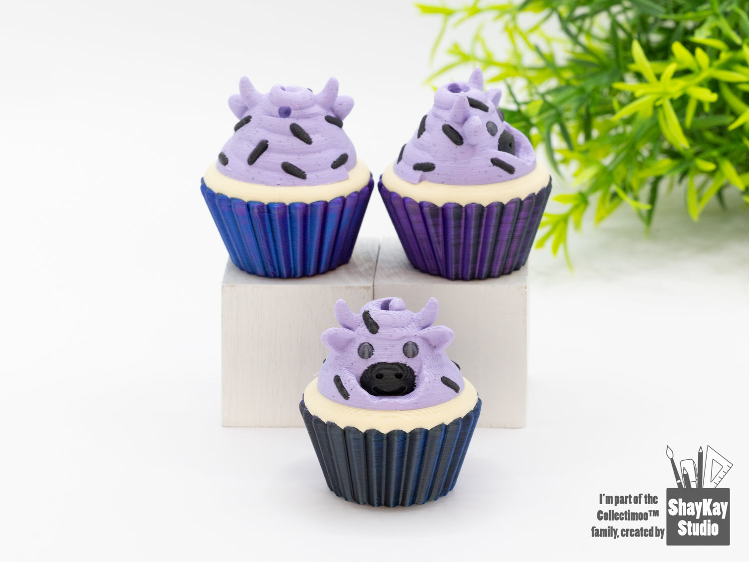 Blackberry Moo-ffin (muffin/cupcake Moo) is part of the Collectimoo® series and can be used as: decorations in vehicles, home decor, game pieces, jewelry and the like, keychains, keyrings, promotional trinkets, as (cow) figurines, for Moo Moo Subaru mooing, for Random Acts of Kindness, and so much more!