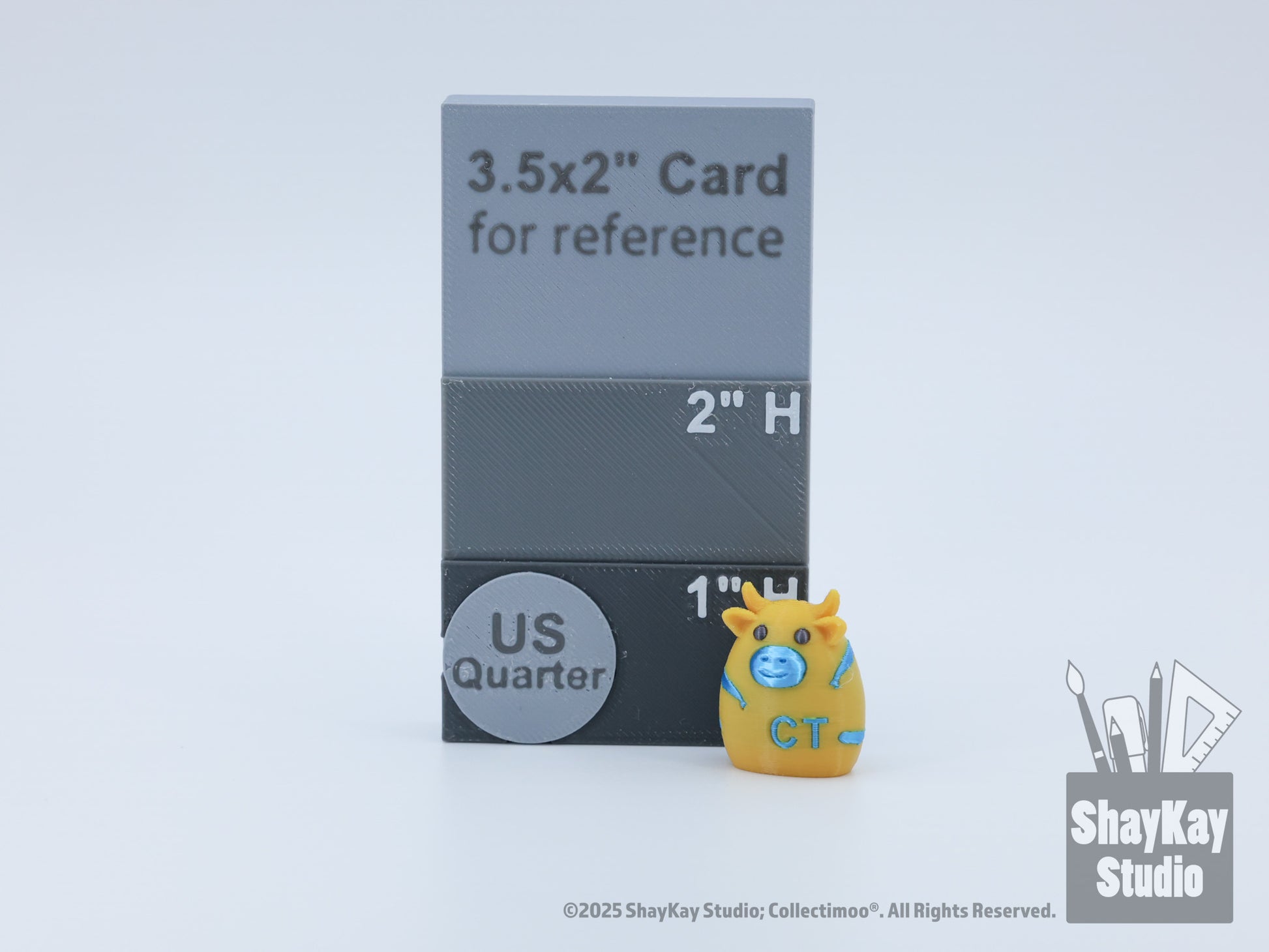 Our Moos measure ~1.58" tall whereas Micro Moos measure 1" tall; both can be ordered as pre-made keychains. What's more, some Micros also are able to be ordered as magnets (aka MOOnetics!)