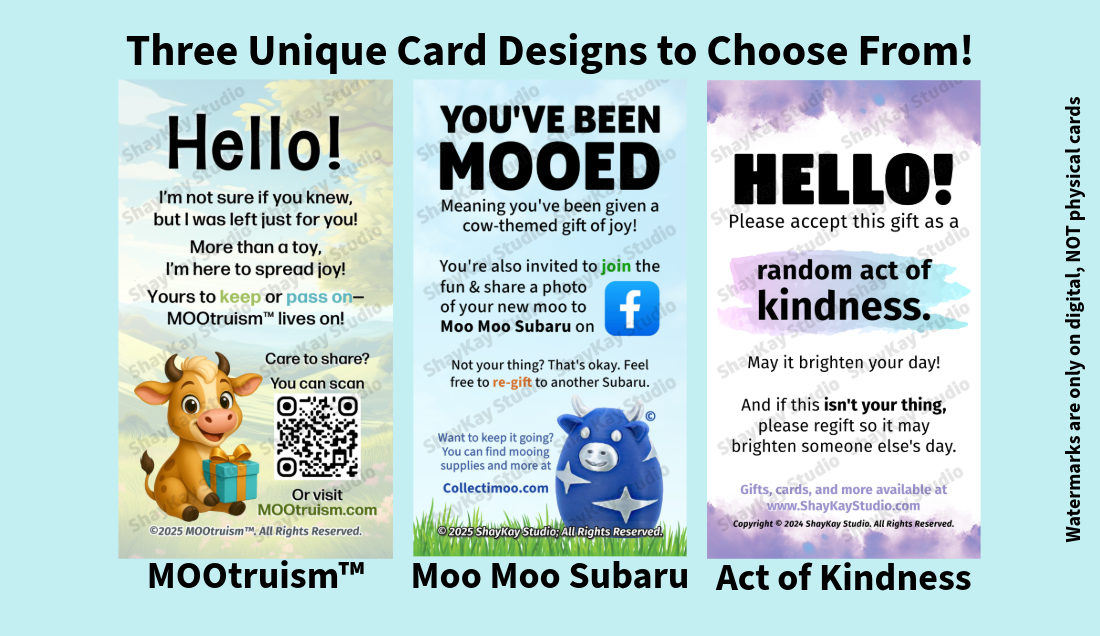 Our Moos measure ~1.58" tall whereas Micro Moos measure 1" tall; both can be ordered as pre-made keychains. What's more, some Micros also are able to be ordered as magnets (aka MOOnetics!)