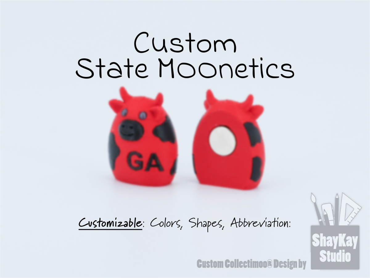 We are pleased to offer our MICRO (1" tall) State MOOnetics! While they can't pack as many details as our standard size, they're still a fun option with a wide range of uses. Especially as amidst their flat back is a powerful neodymium magnet!