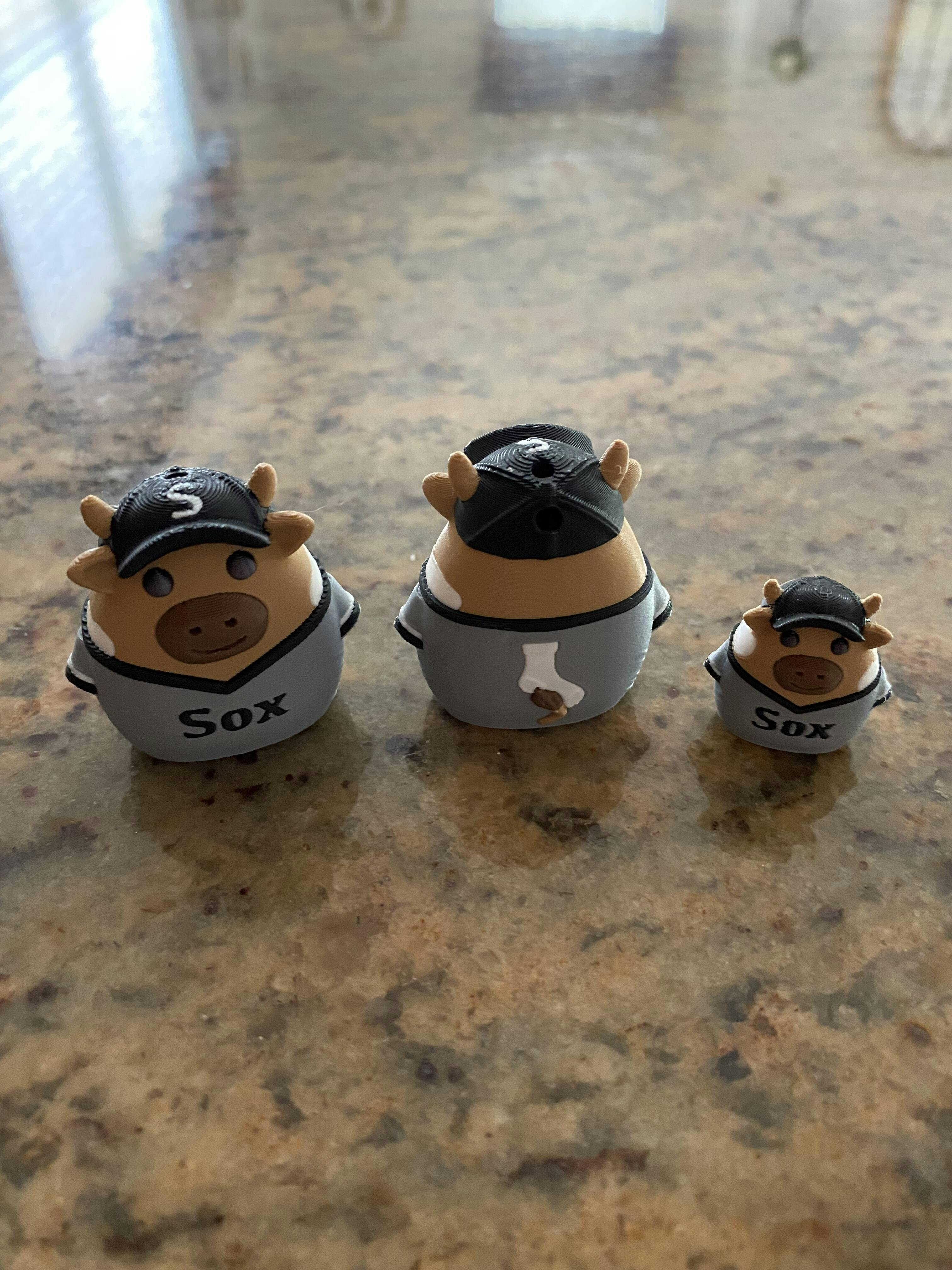 Our Moos measure ~1.58" tall whereas Micro Moos measure 1" tall; both can be ordered as pre-made keychains. What's more, some Micros also are able to be ordered as magnets (aka MOOnetics!)
