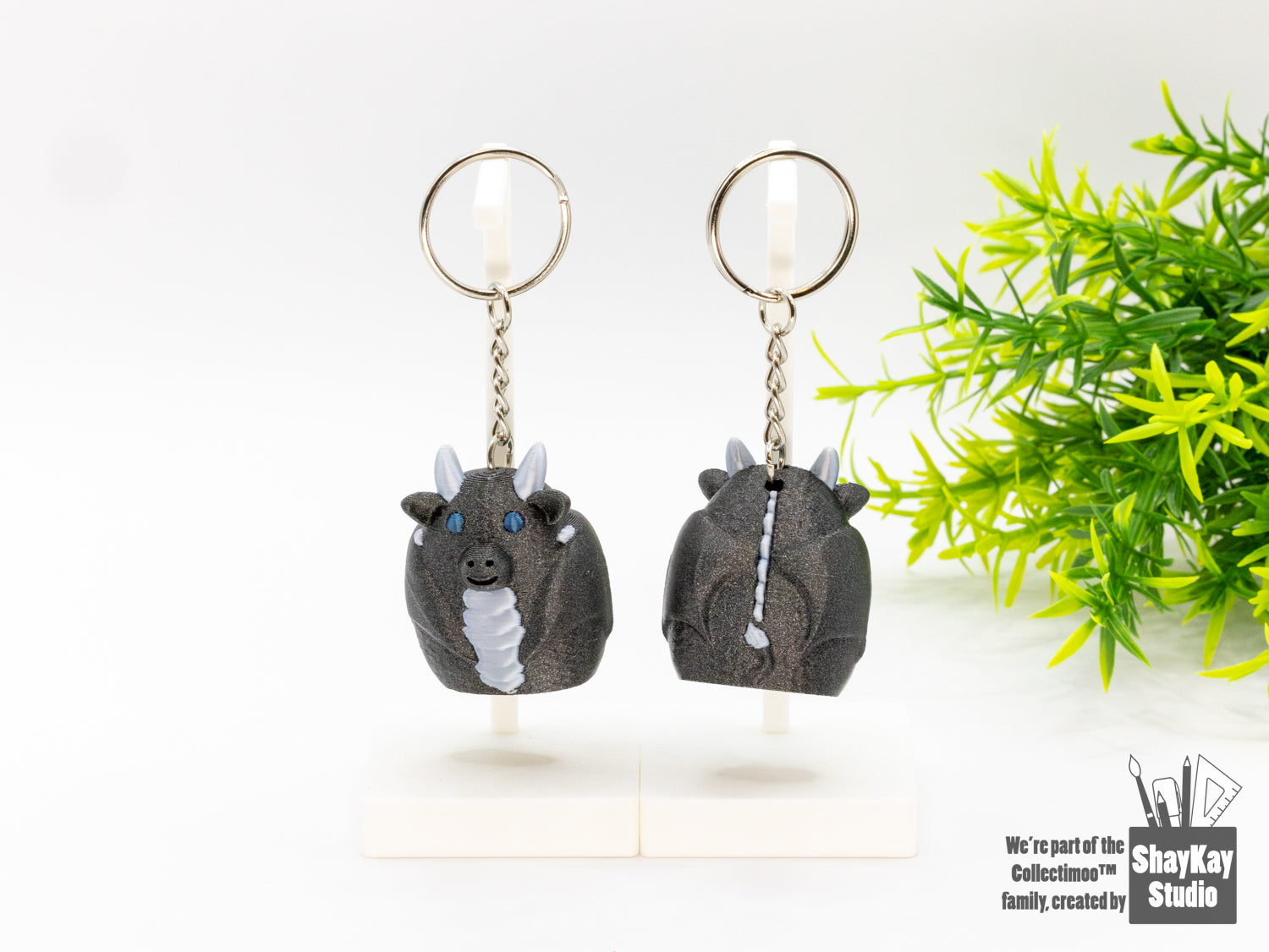 Our Moos measure ~1.58" tall whereas Micro Moos measure 1" tall; both can be ordered as pre-made keychains. What's more, some Micros also are able to be ordered as magnets (aka MOOnetics!)