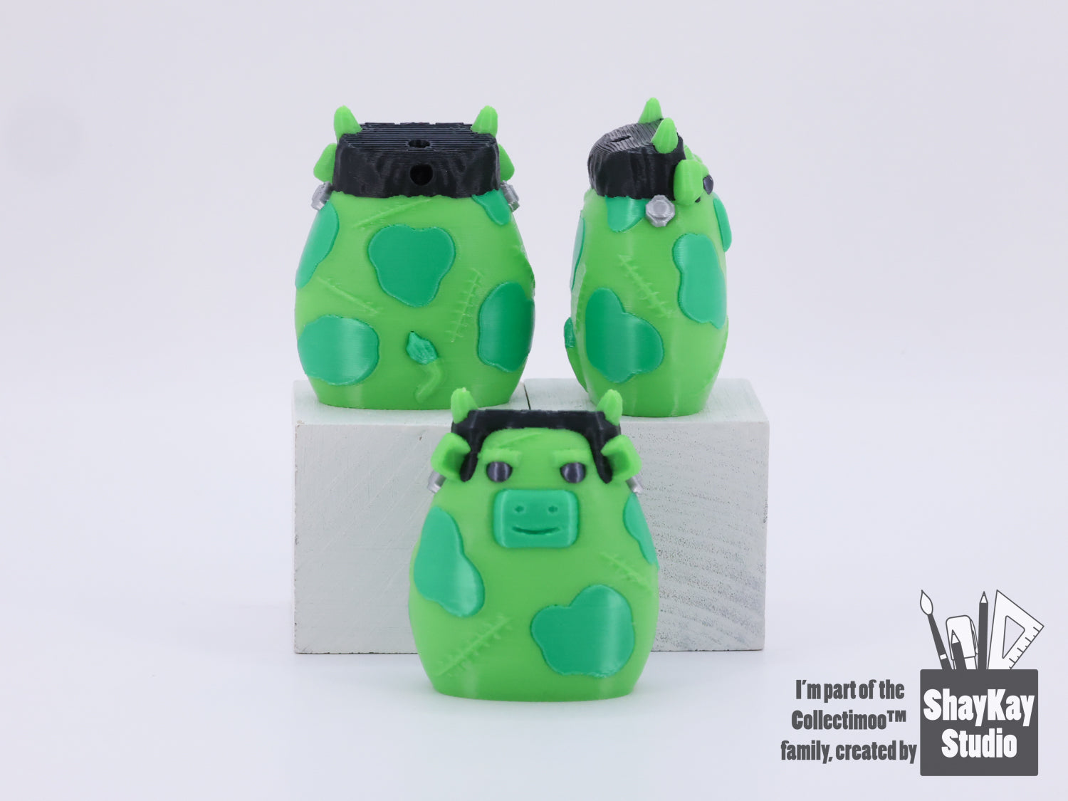 It’s alive… and it’s udderly delightful! With stitched-up spots, bold bolts, and a flat-topped headpiece, FrankenMOO’s Monster is a frightfully fun twist on a classic creature. Don’t worry though—this green giant isn’t here to spook, just to spread smiles and maybe a little Halloween mischief. 🎃✨