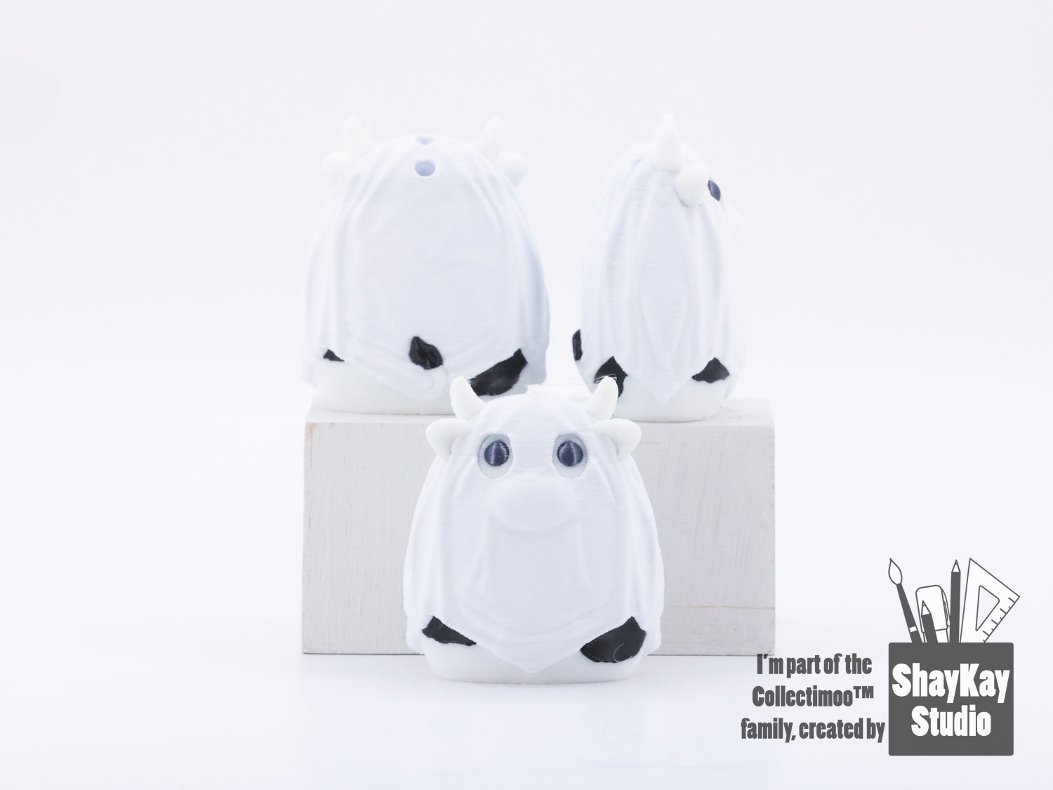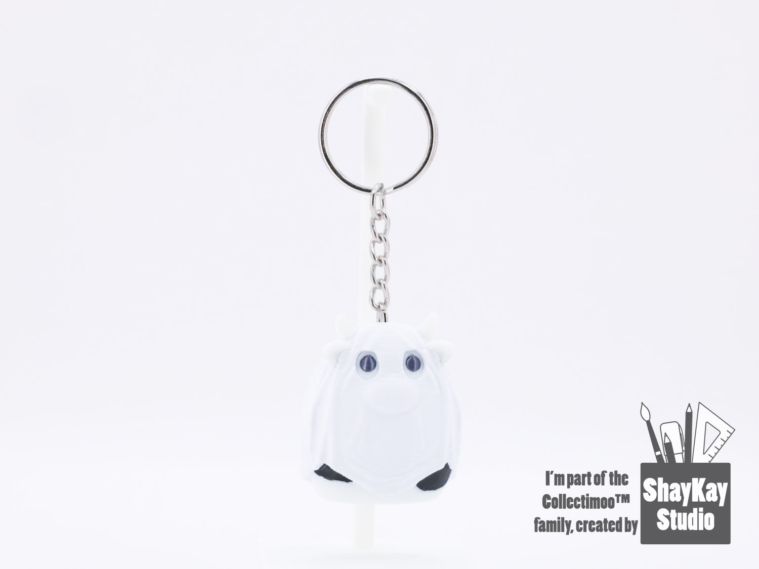 Ghost Moo is part of the Collectimoo® series and can be used as: decorations in vehicles, home decor, game pieces, jewelry and the like, keychains, keyrings, promotional trinkets, as (cow) figurines, for Moo Moo Subaru mooing, for Random Acts of Kindness, and so much more!