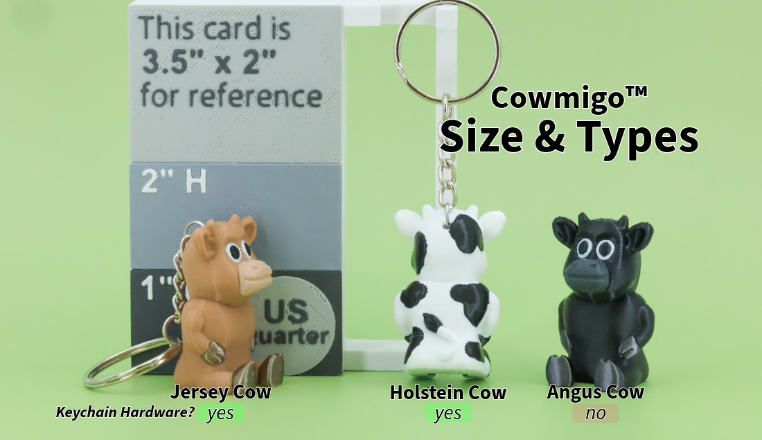 Our Cows measure ~1.58" tall and can be ordered as cows only or have keychain hardware added at time of ordering!