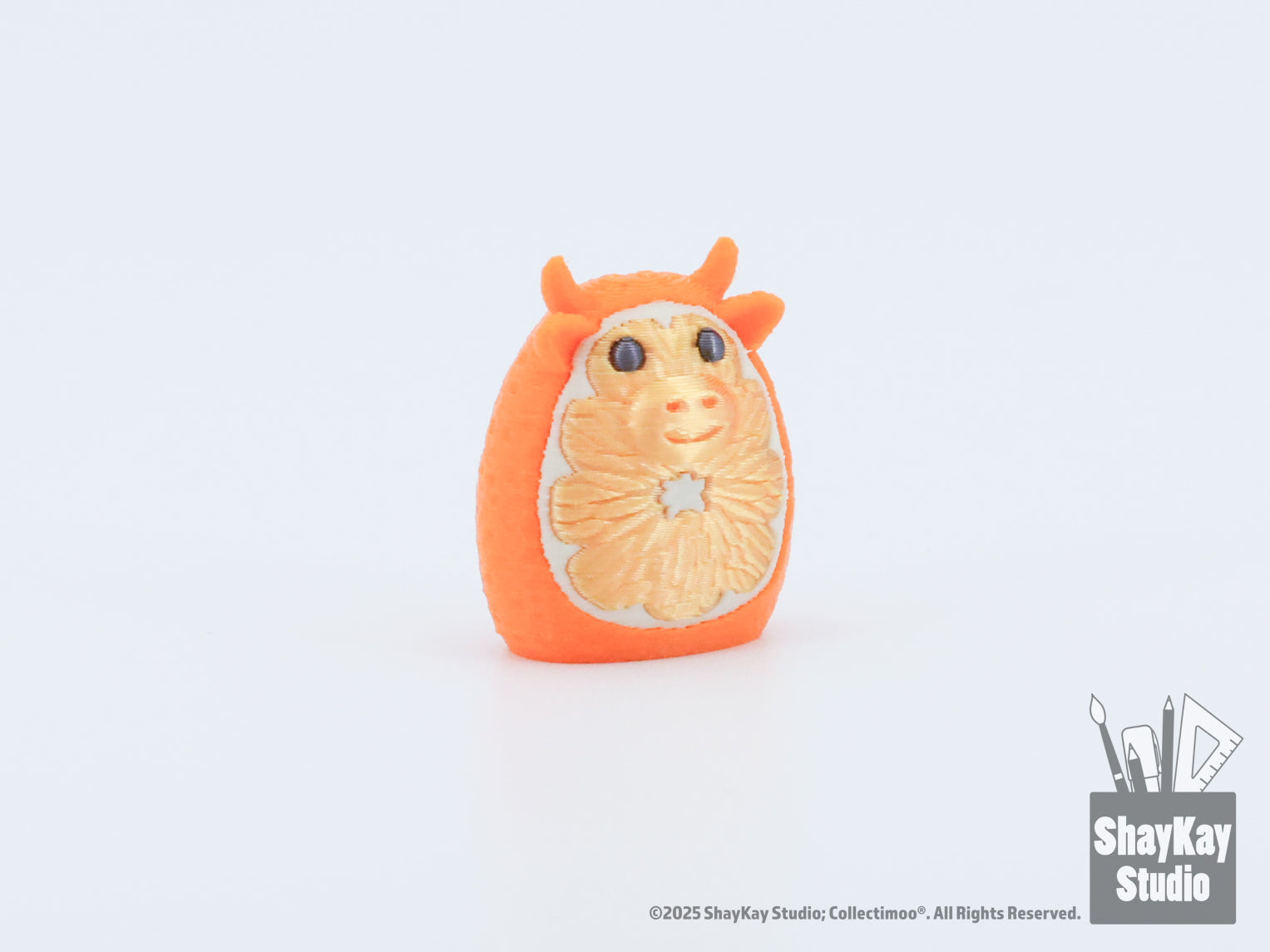 Zesty, bright, and full of citrusy charm—meet Orange Moo! This vibrant cow is a juicy delight, with a front half showcasing a detailed cut-away of orange wedges and pith, while the back half features a textured peel for the perfect fruity contrast. A refreshing addition to any collection, Orange Moo is bursting with fun and ready to spread a little sunshine!