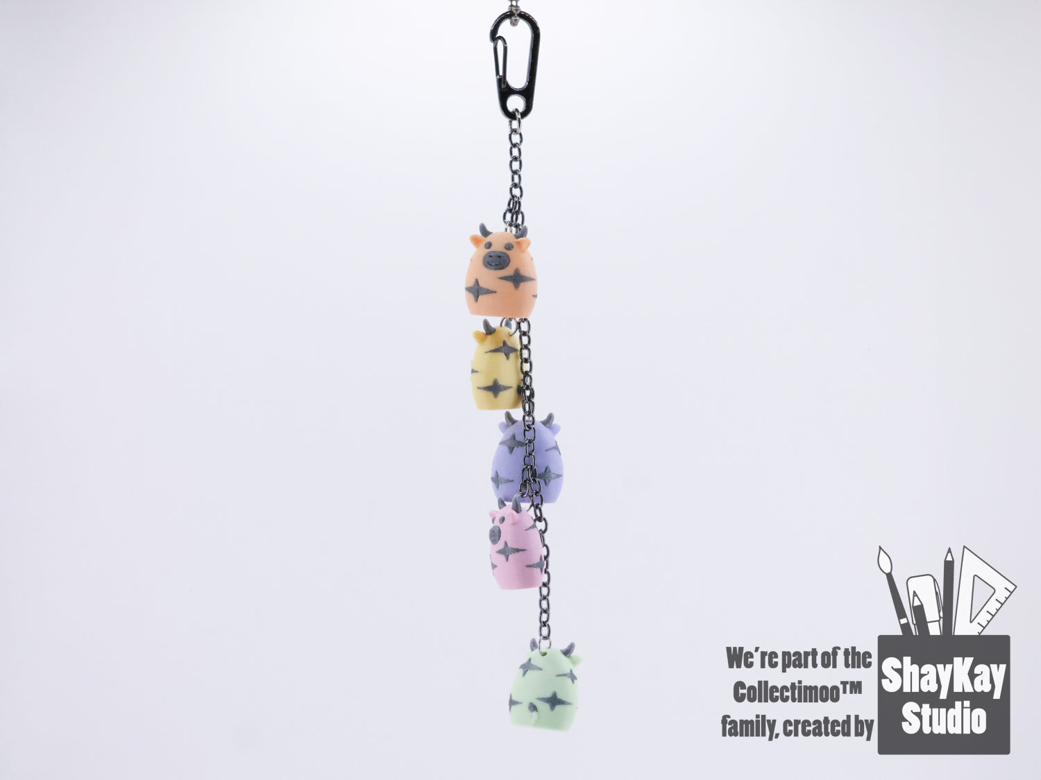Our Micro Pale Starry Moo Charm Strand offers a fun way to display five of your favorite Micro Moos from the Pale Starry collection! Though as this only displays 5 of the 6 available colors, you can choose which one you want left out, or leave it to chance!