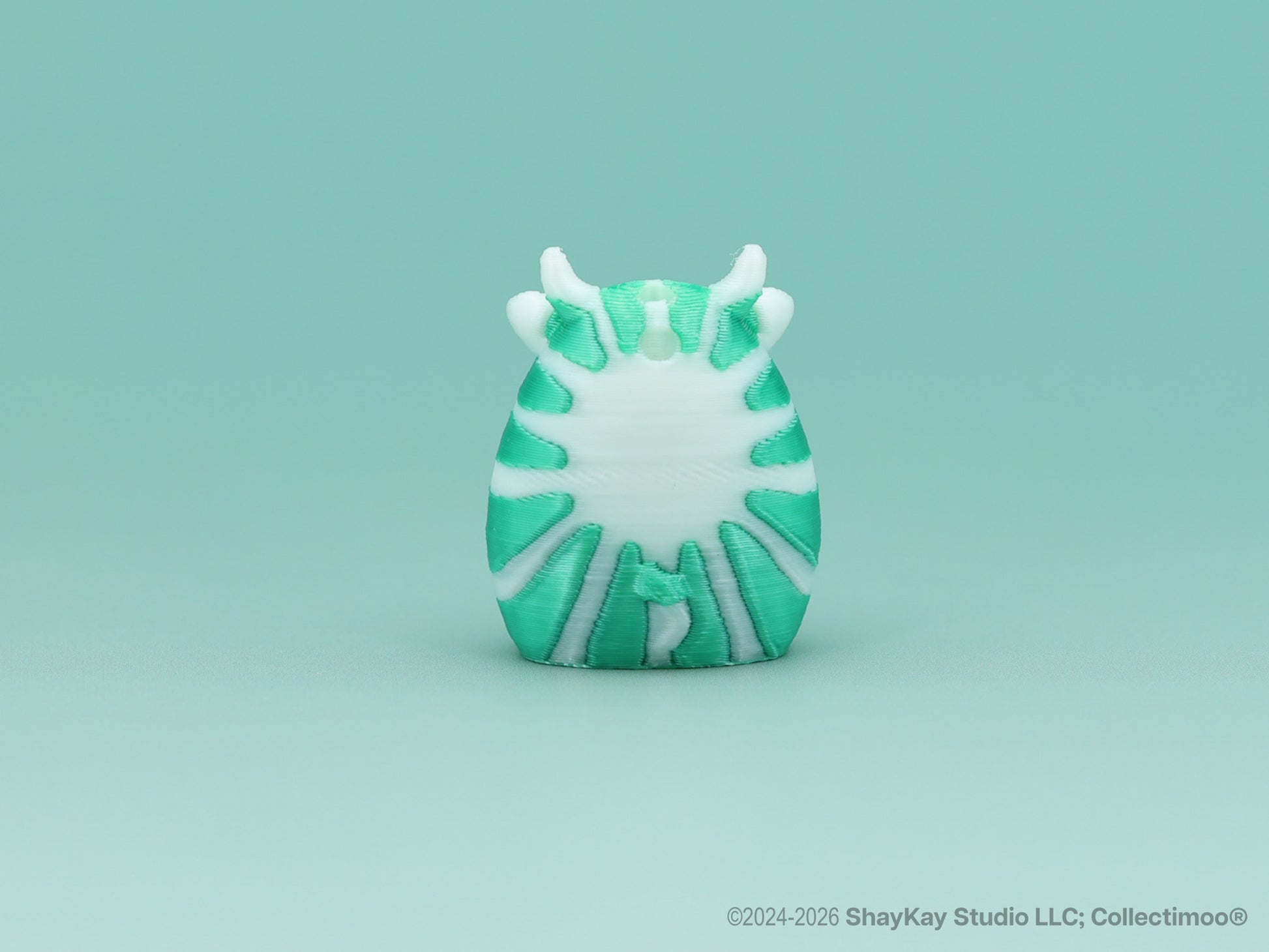This Micro Spearmint Moo is part of the Collectimoo® series and can be used as: decorations in vehicles, home decor, game pieces, jewelry and the like, keychains, keyring, promotional trinkets, as figurines, and so much more!