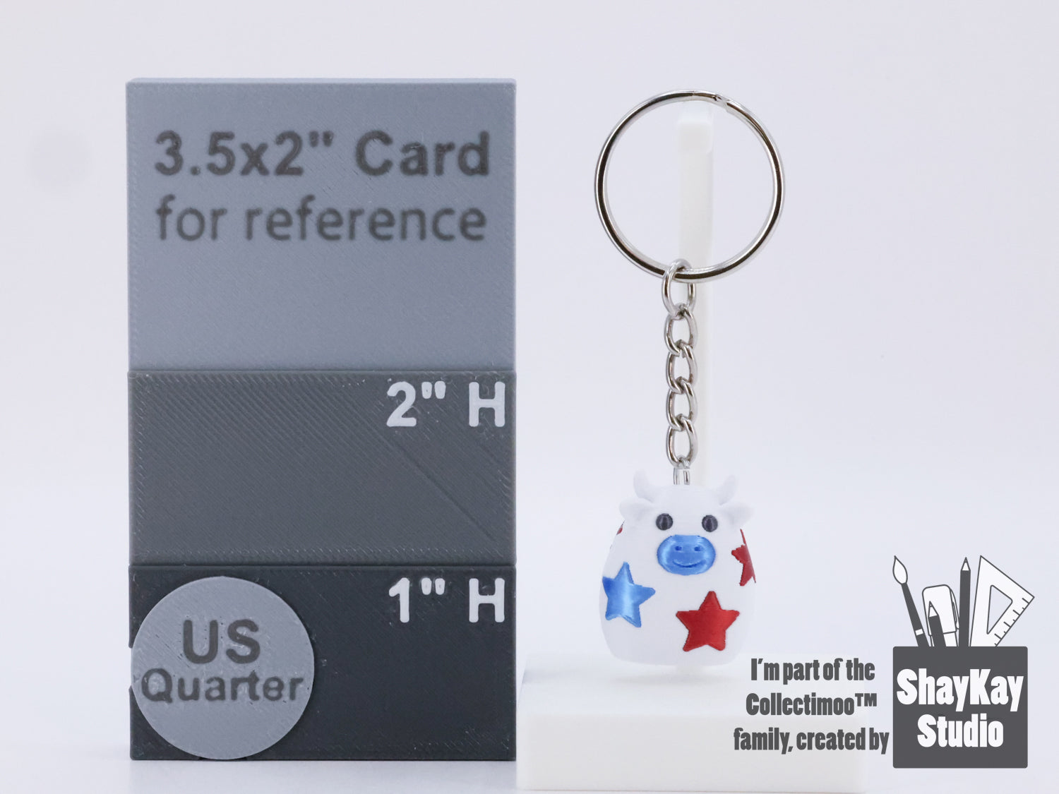 This Micro USA Moo is part of the Collectimoo® series and can be used as: decorations in vehicles, home decor, game pieces, jewelry and the like, keychains, keyring, promotional trinkets, as figurines, and so much more!