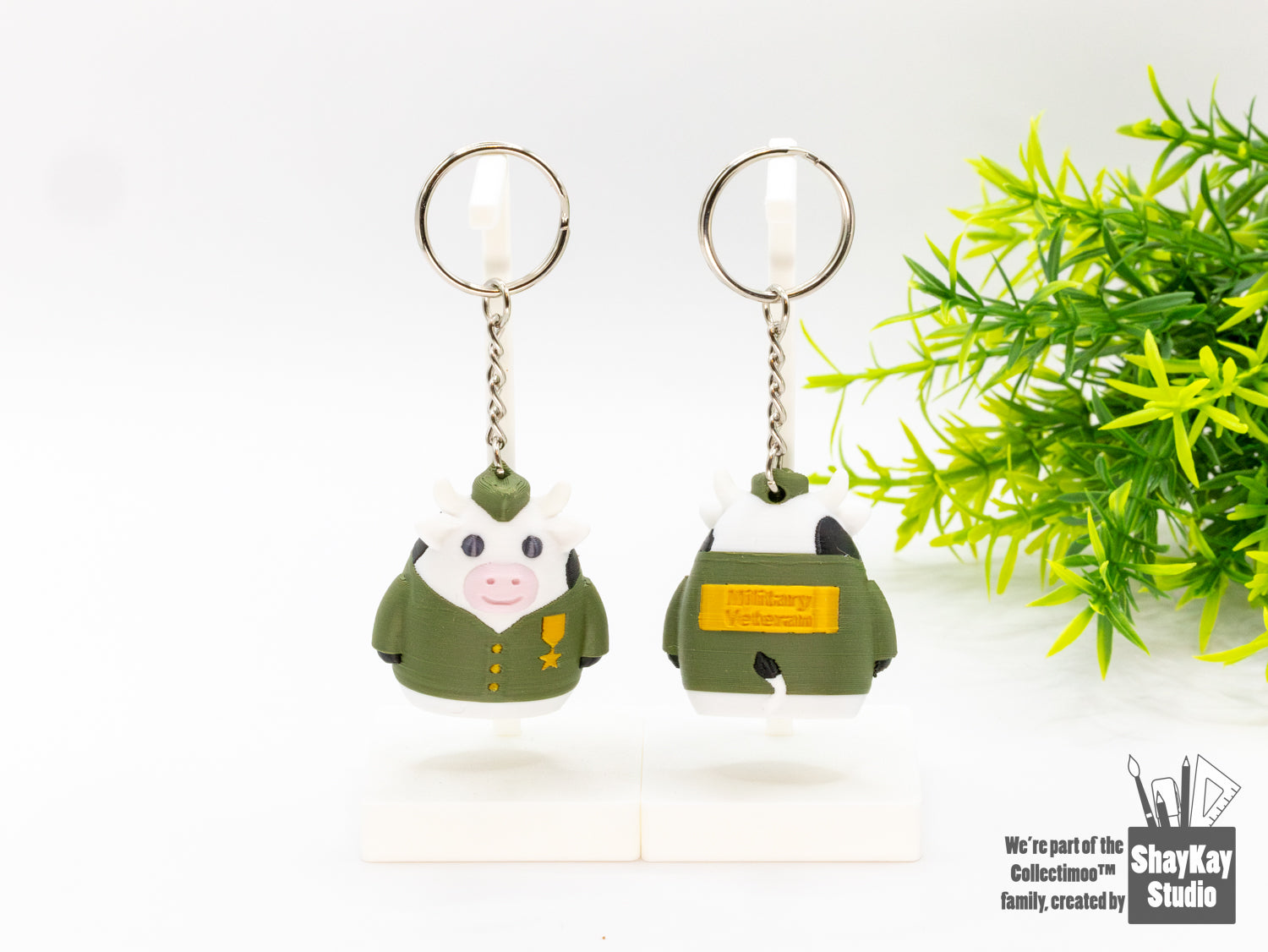 Military Veteran Moo is part of the Collectimoo™ series and can be used as: decorations in vehicles, home decor, game pieces, jewelry and the like, keychains, keyrings, promotional trinkets, as (cow) figurines, for Moo Moo Subaru mooing, for Random Acts of Kindness, and so much more!