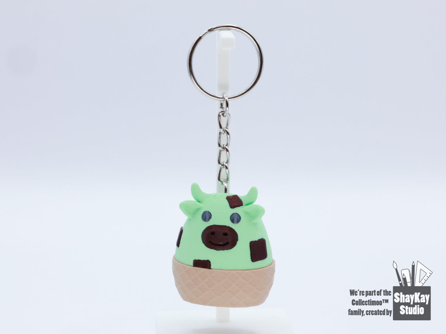 Minty Moo Jr (part of our Ice Cream collection) is part of the Collectimoo® series and can be used as: decorations in vehicles, home decor, game pieces, jewelry and the like, keychains, keyrings, promotional trinkets, as (cow) figurines, for Moo Moo Subaru mooing, for Random Acts of Kindness, and so much more!