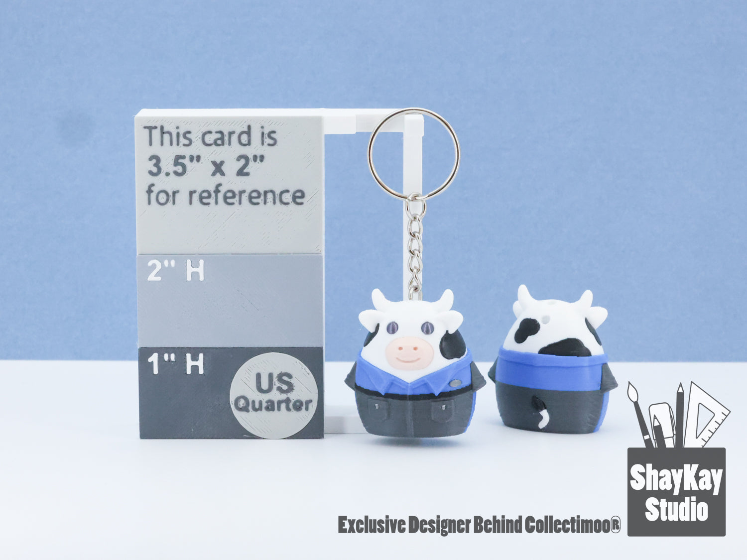Our Moos measure ~1.58" tall whereas Micro Moos measure 1" tall; both can be ordered as pre-made keychains. What's more, some Micros also are able to be ordered as magnets (aka MOOnetics!)