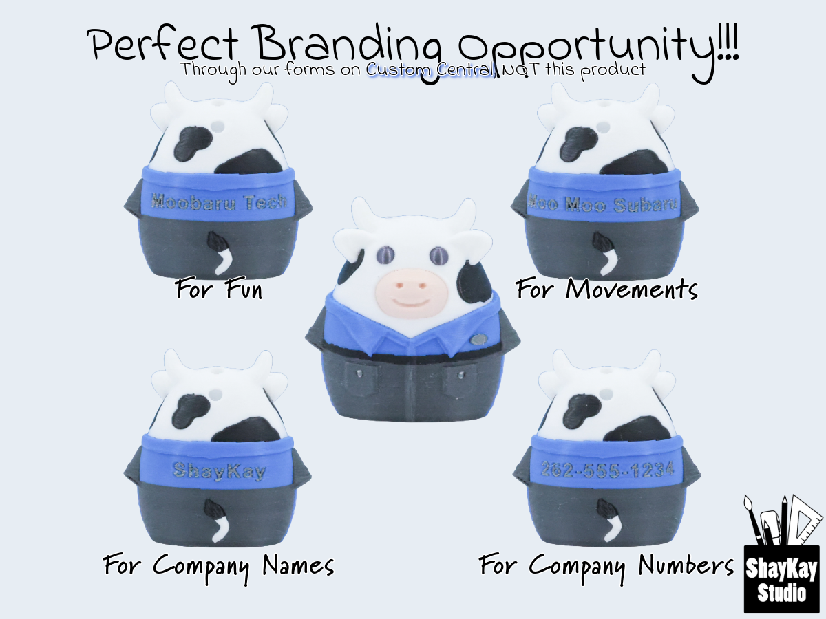 Inspired by Subaru's technician uniforms, our Mechanic Moo is the perfect option to bring your local dealer's technicians into the Moo Moo Subaru or MOObaru Movement family!