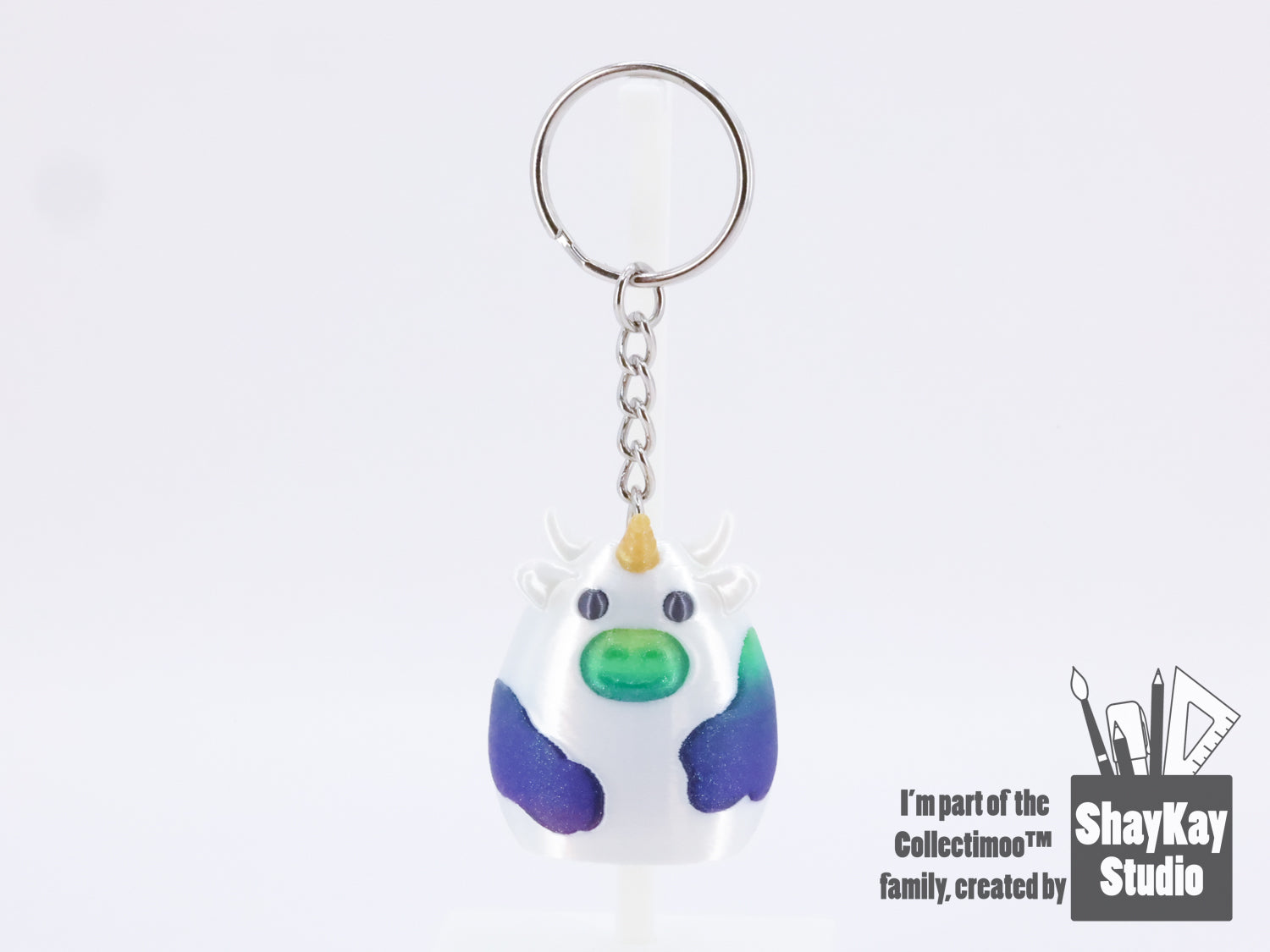 Moo-nicorn is part of the Collectimoo® series and can be used as: decorations in vehicles, home decor, game pieces, jewelry and the like, keychains, keyrings, promotional trinkets, as collectible (cow) figurines, for Moo Moo Subaru mooing, for Random Acts of Kindness, and so much more!