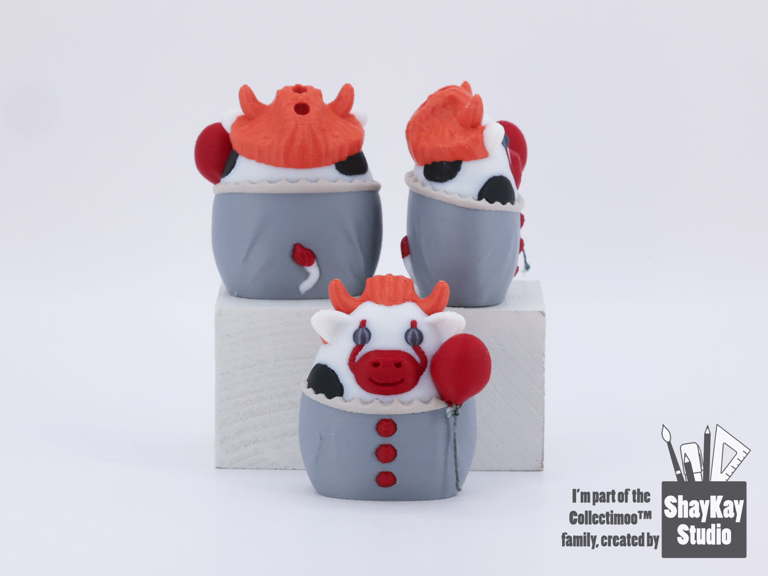 Penny Moo with Balloon playfully echoes the eerie charm of Stephen King’s iconic clown—right down to that infamous red balloon. Yet ShayKay Studio Team’s design turns the sinister undertones into a whimsical delight. If you love nostalgic horror references wrapped in a sweet, imaginative packages, this is one moo moo you can’t pass up.