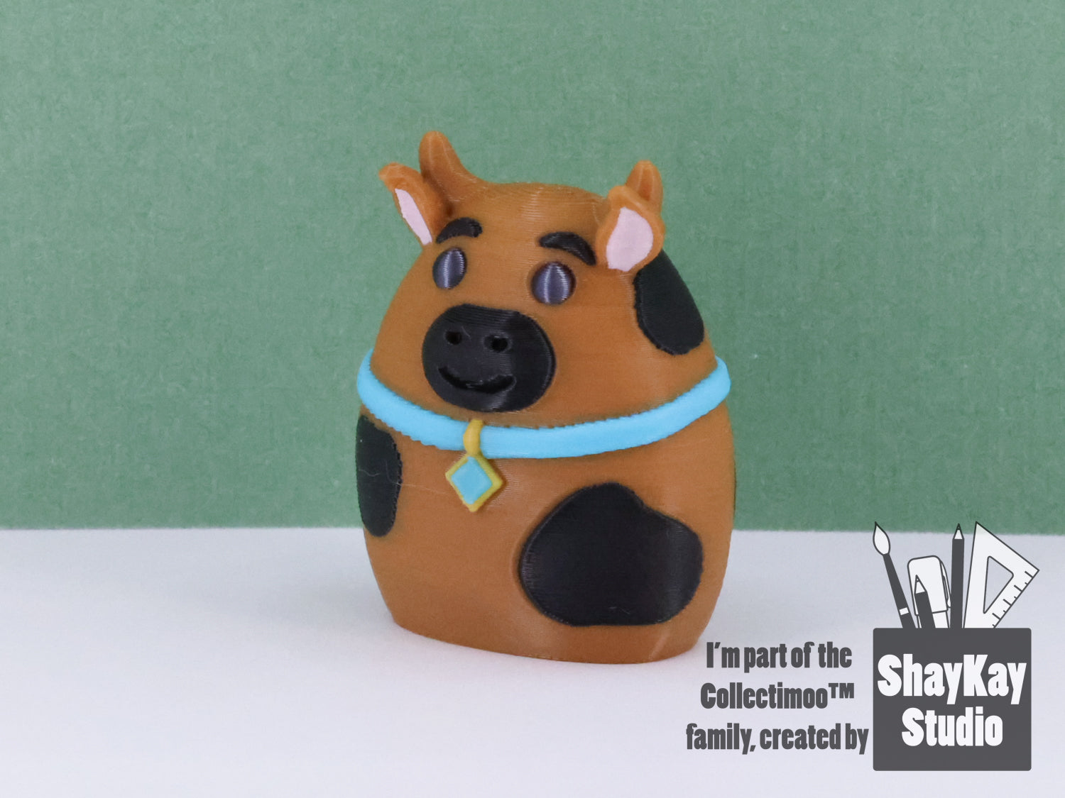 Scooby Moo is part of the Collectimoo® series and can be used as: decorations in vehicles, home decor, game pieces, jewelry and the like, keychains, keyrings, promotional trinkets, as (cow) figurines, for Moo Moo Subaru mooing, for Random Acts of Kindness, and so much more!