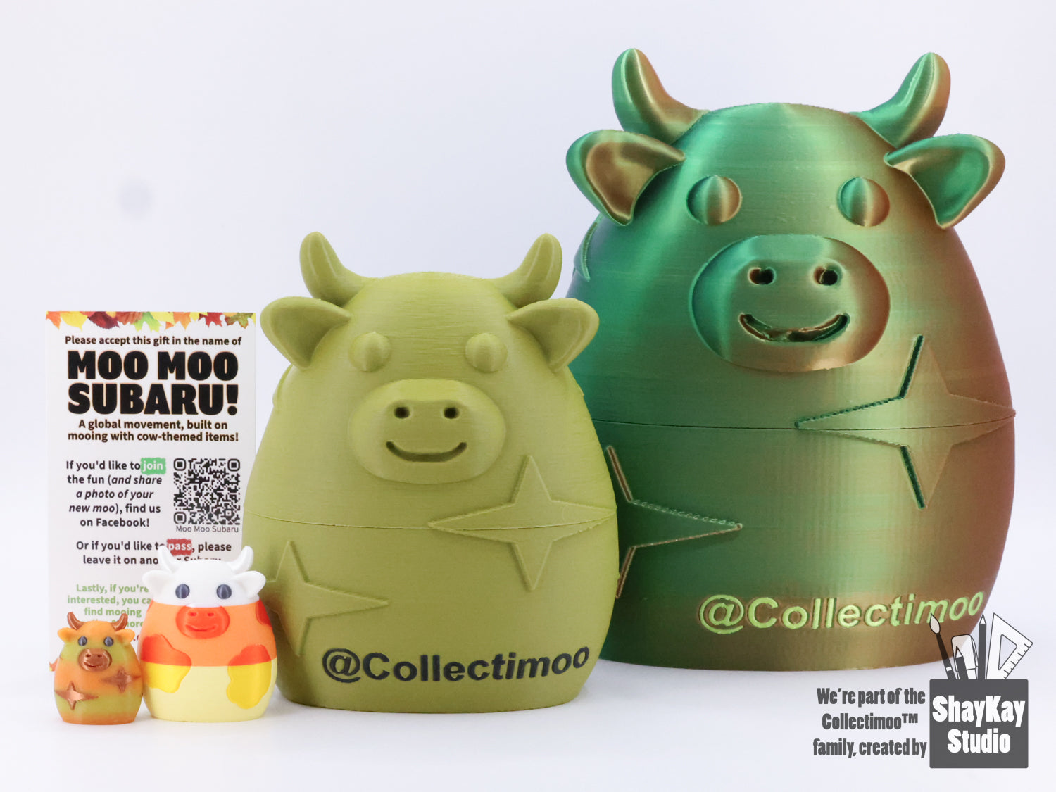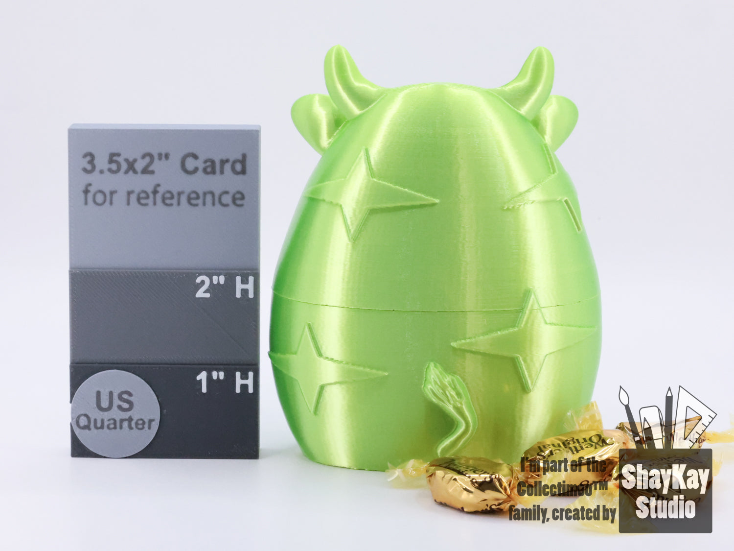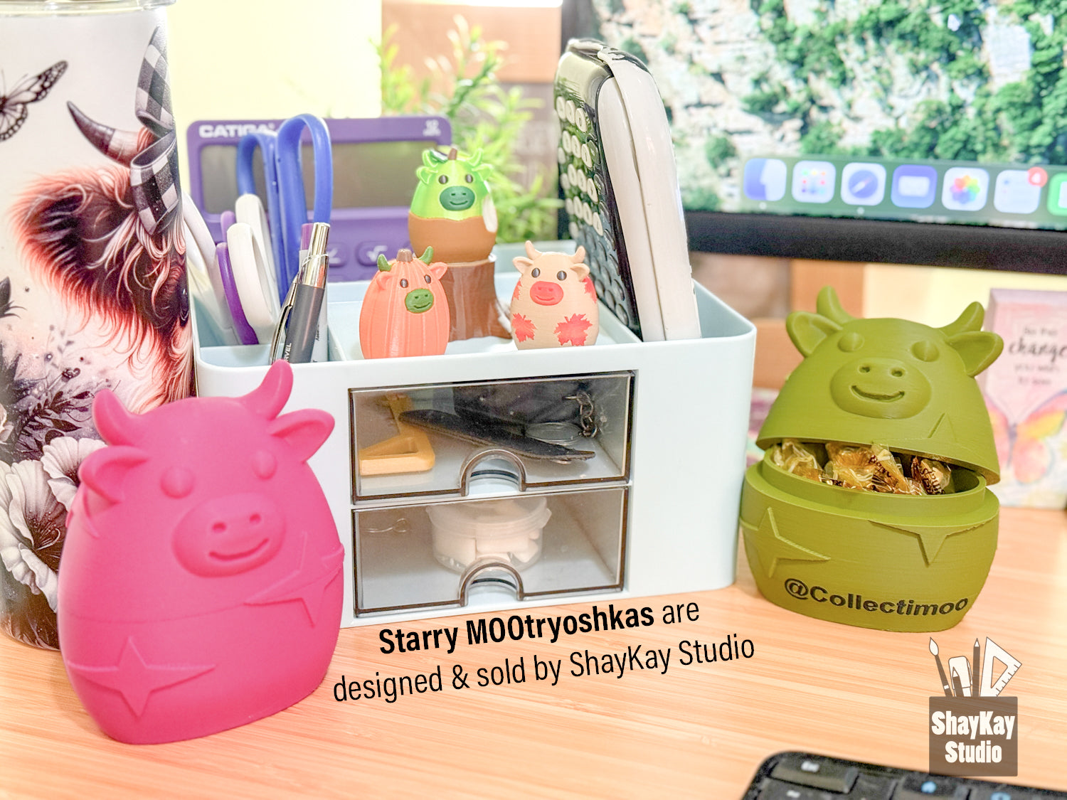 Where whimsy and function meet, the Starry MOOtryoshka will be there! Available in both 4.5" or 6.5" tall models, these are perfect for storing little keepsakes, candy, or anything else you might want to hide away on your desk or in your space.