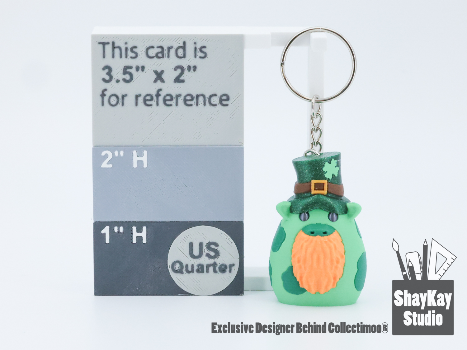 Our Moos measure ~1.58" tall whereas Micro Moos measure 1" tall; both can be ordered as pre-made keychains. What's more, some Micros also are able to be ordered as magnets (aka MOOnetics!)