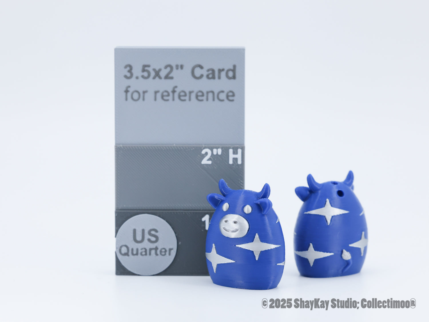 Celebrate your love for the classics with our Traditional Blue Starry Moo! Cloaked in a bold blue and adorned with bright silver stars, this cheerful Collectimoo® captures the spirit of adventure and wonder. Whether you're cruising under a starlit sky or spreading a little magic through random acts of kindness, this mini companion is ready to shine alongside you.